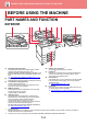 BEFORE USING THE MACHINE BEFORE USING THE MACHINE User Control . . . . . . . . . . . . . . . . . . . . . . . . . . . . . . 1-43 • User List . . . . . . . . . . . . . . . . . . . . . . . . . . . . . . 1-43 • Default Settings . . . . . . . . . . . . . . . . . . . . . . . . 1-47 • Administration Settings. . . . . . . . . . . . . . . . . . . 1-51 • Actions when the user is authenticated . . . . . . 1-52 PART NAMES AND FUNCTION . . . . . . . . . . . . . . . 1-3 • EXTERIOR . . . . . . . . . . . . . .
