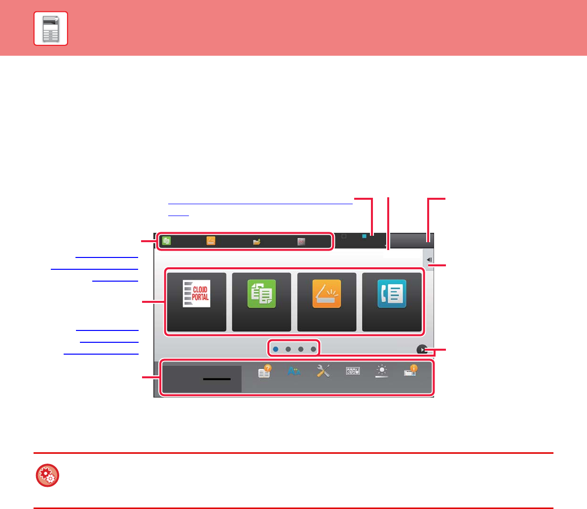 Pressing the [Home Screen] key on the operation panel displays the home screen on the touch panel. The home screen