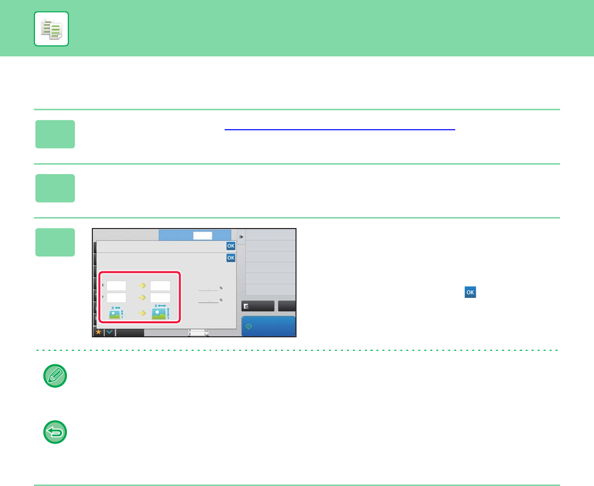 Tap the image size and output size areas, and enter the sizes using the numeric keys.
