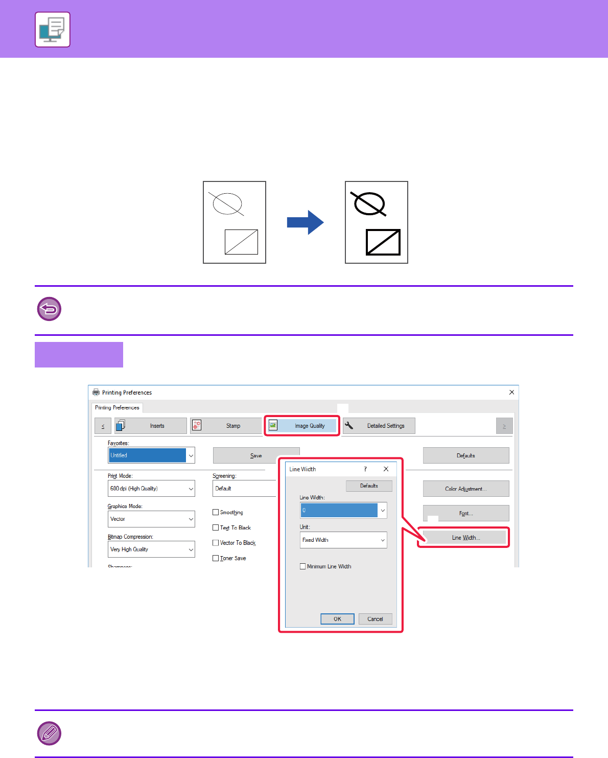 • When printing from an application that processes lines as raster graphics, line widths cannot be adjusted.
