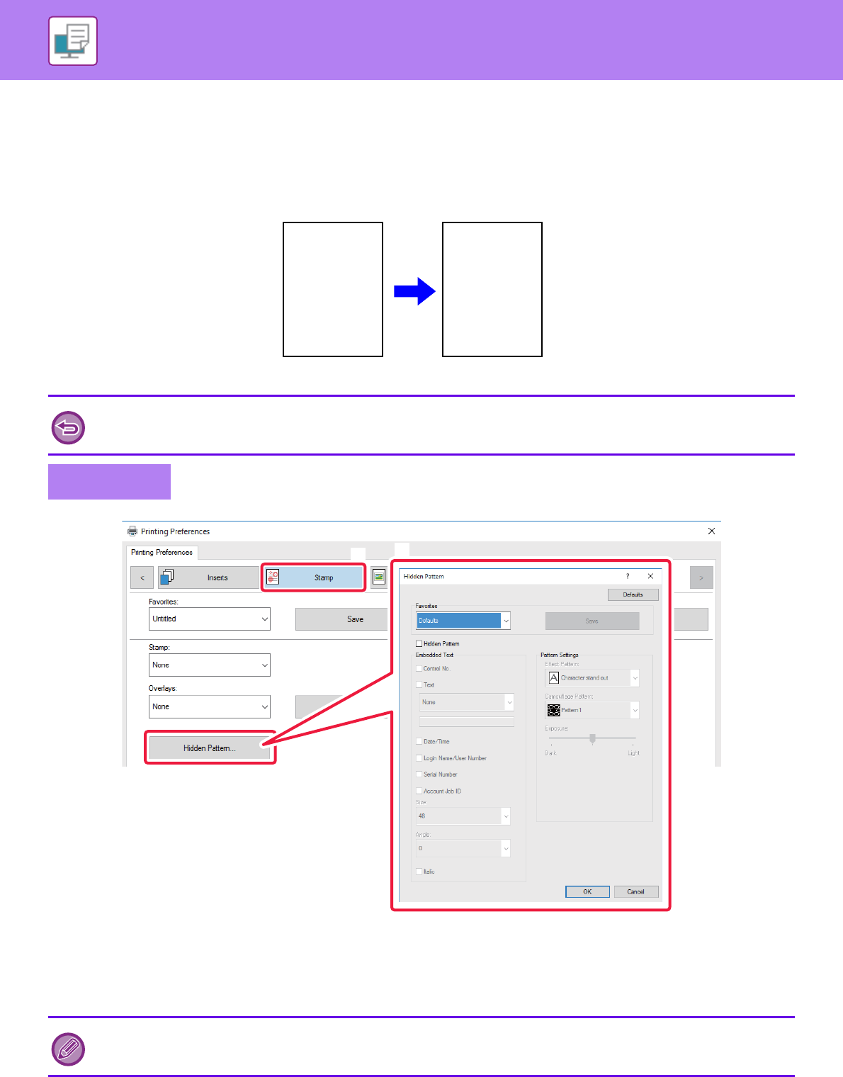 If paper with pattern data is duplicated, the pattern data emerges in the background, which will help to prevent