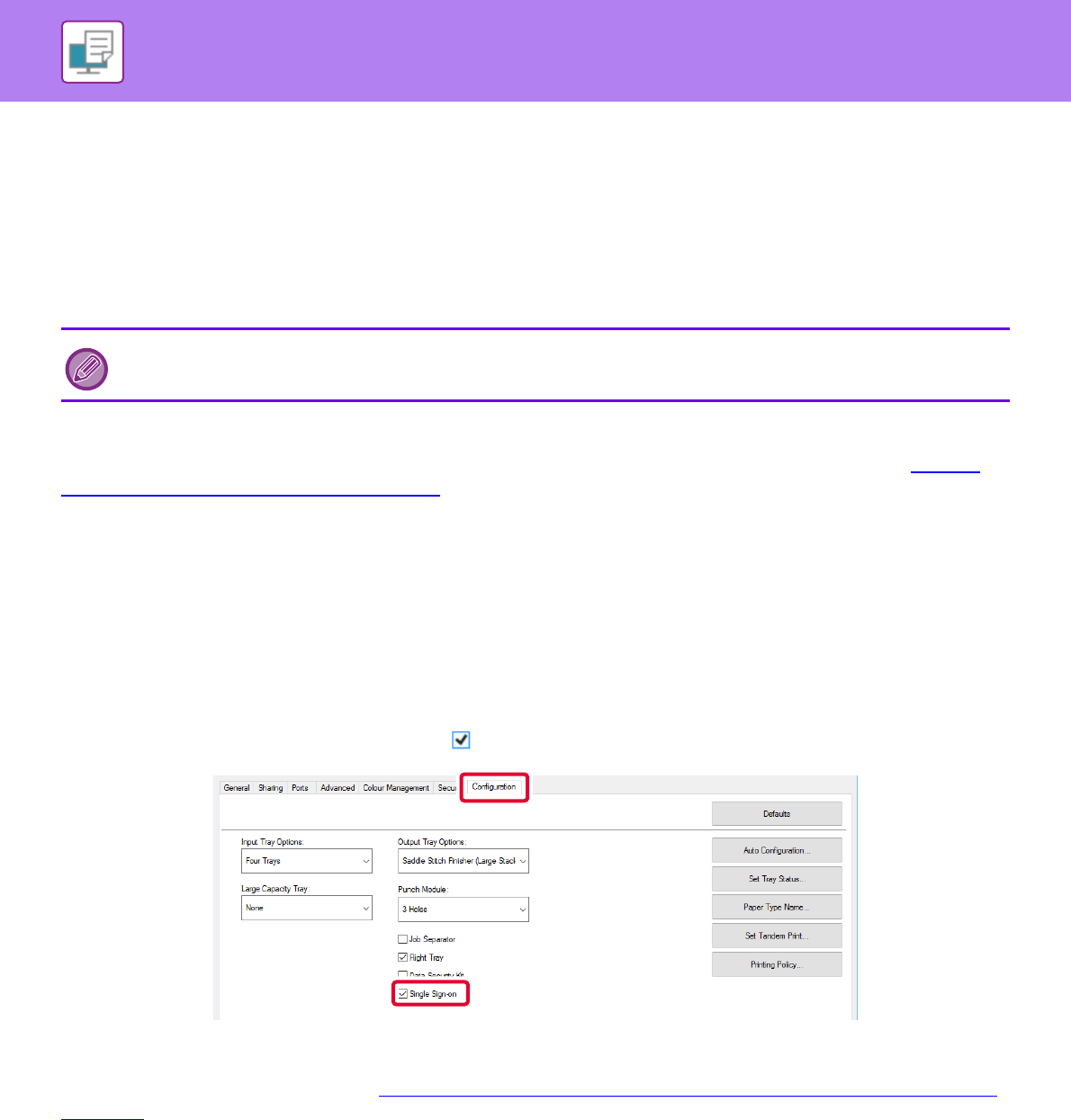 (4) Set the [Single Sign-on] checkbox to .