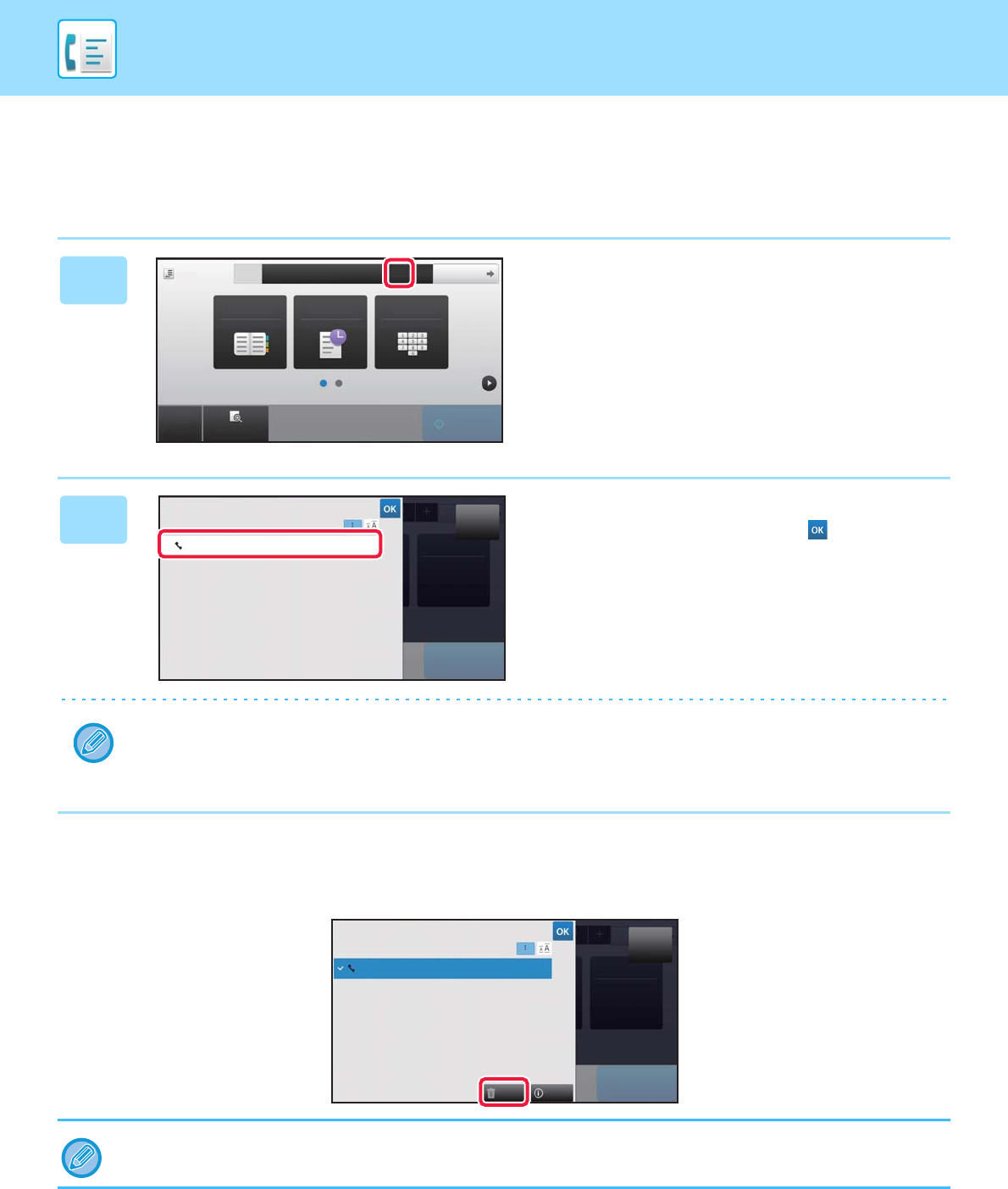 • To confirm detailed information such as the type or name of the specified destination, tap the one-touch key of the