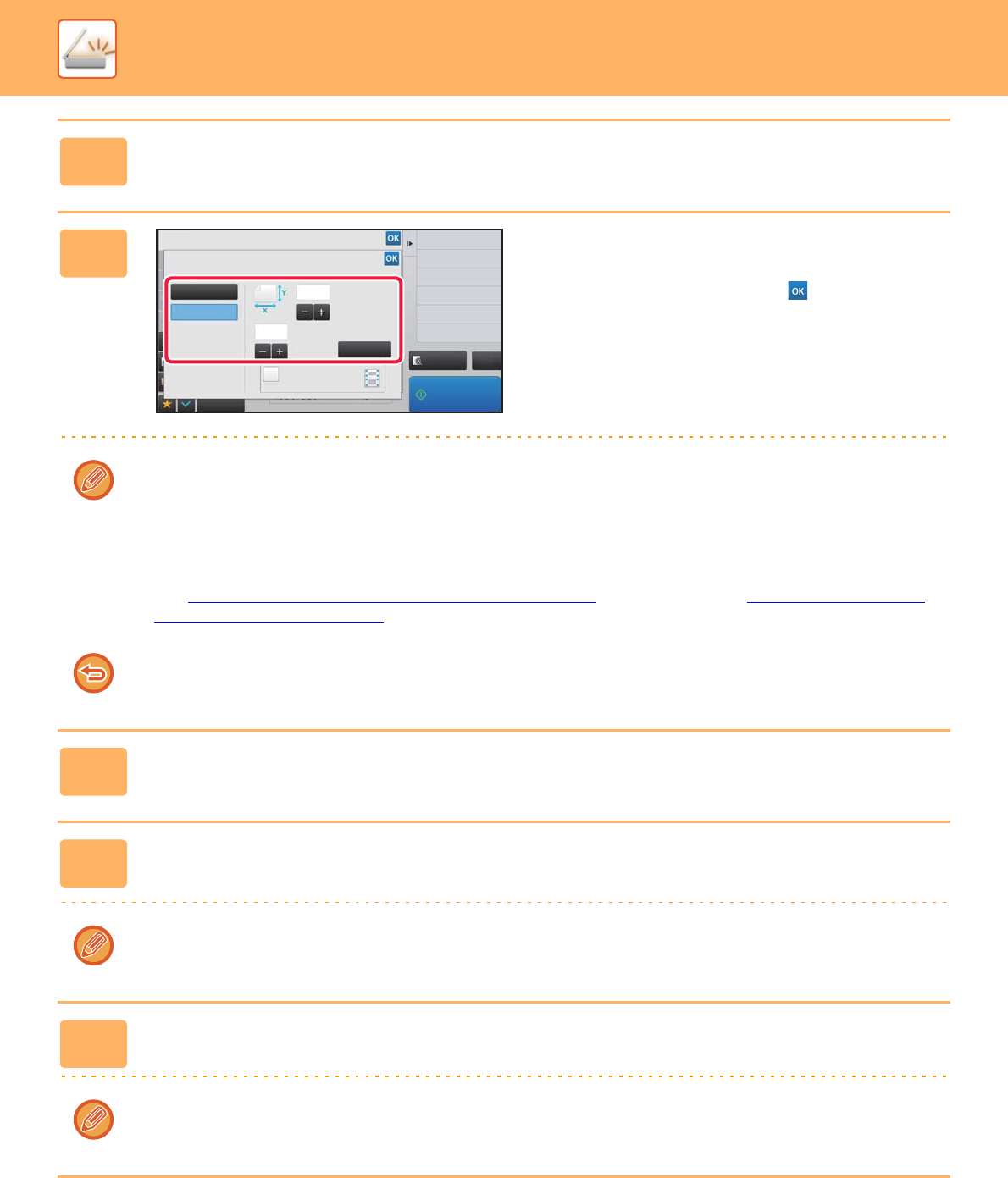 this case, the screen of this step appears when you tap the scan size key. For the procedure for setting the send size,