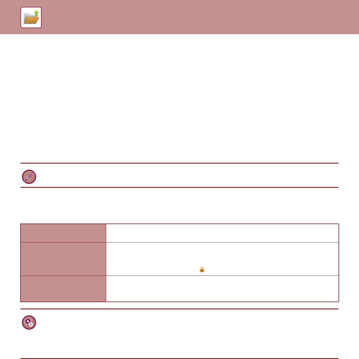 Passwords (PIN code: 4 to 8 digit number) can be established for custom folders and for files saved in custom folders.