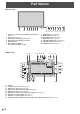 Part Names nFront view 1 2 3 4 5 6 7 1. USB port for external source (USB 3.0 compliant) (See page 13.) 2. Pen Tray (See page 17.) 3. LED indicator for USB Type C 1 source 4. LED indicator for USB Type C 2 source 5. Windows button 6. LED indicator for HDMI 7. LED indicator for Wireless LAN nRear view 15 35 8 2 8. 9. 10. 11. 12. 13. 14. 9 10 11 12 13 INPUT button (See page 21.) MENU button (See page 21.) MIC MUTE button (See page 21.) MUTE button (See page 21.) VOLUME DOWN button (See page 21.