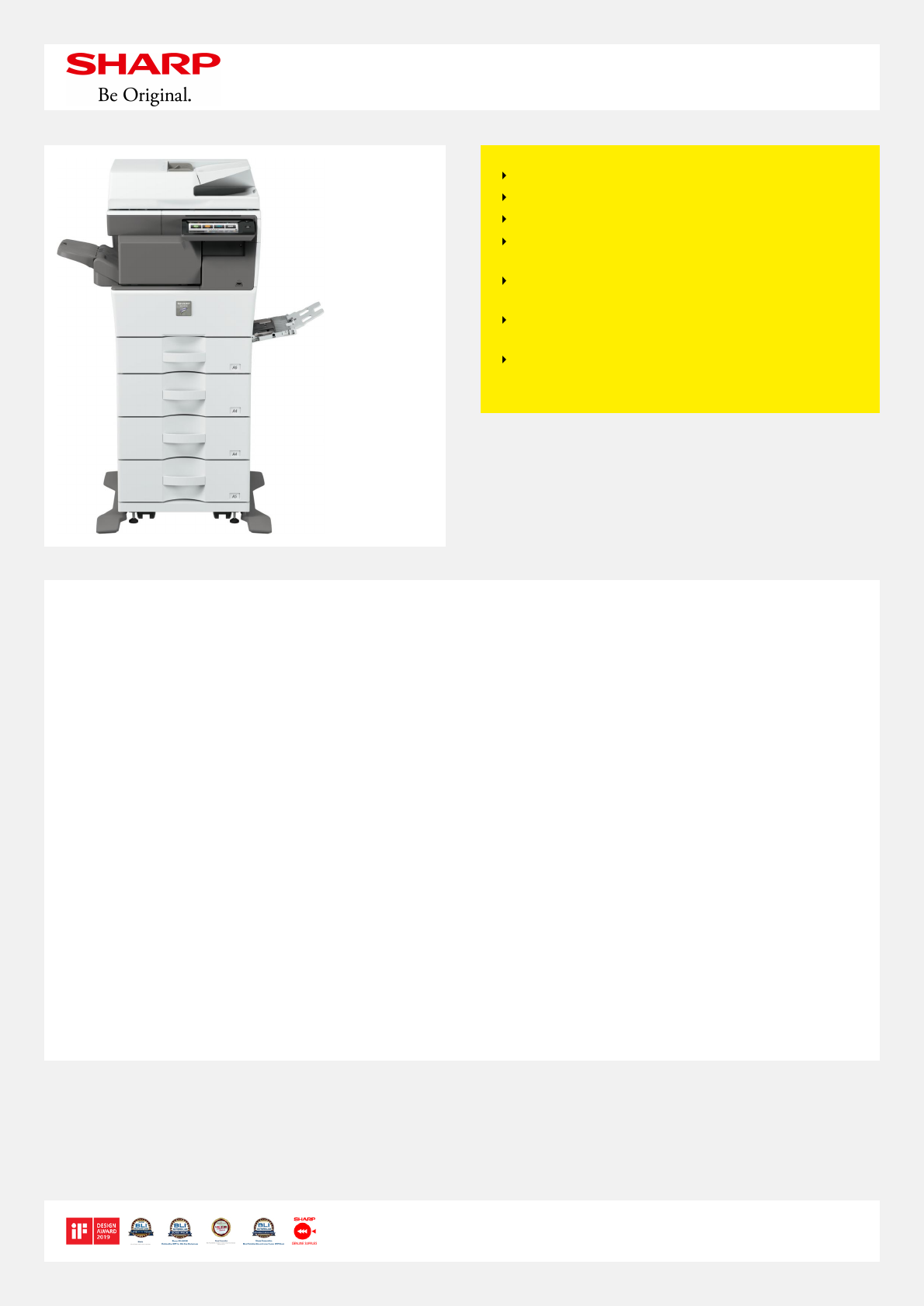 The MX-B455W compact A4 MFP brings you fast, convenient printing, copying and scanning with output speeds of 45ppm in