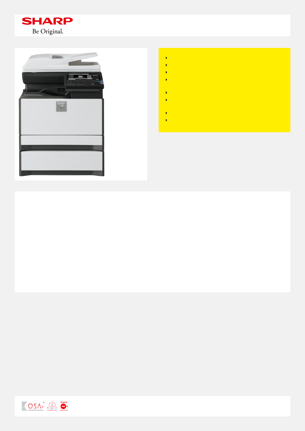features you’d expect to find on an A3 device, such as optional Sharp OSA which enables the MX-C301W to connect with