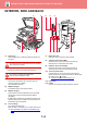 BEFORE USING THE MACHINE►BEFORE USING THE MACHINE AUTOMATIC DOCUMENT FEEDER AND DOCUMENT GLASS MX-B356W (1) (2) (3) (4) (5) (6) (3) (4) (5) (6) (7) MX-B456W (1) (2) (7) (1) Document feeding cover Open this cover to remove an original misfeed. This cover is also opened to clean the paper feed roller. ► CLEANING THE PAPER FEED ROLLER (page 1-124) (2) Original guides These guides help ensure that the original is scanned correctly. Adjust the guides to the width of the original.