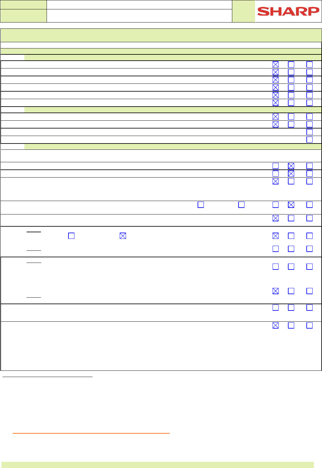Product environmental attributes - Market requirements (See General Note GN below)