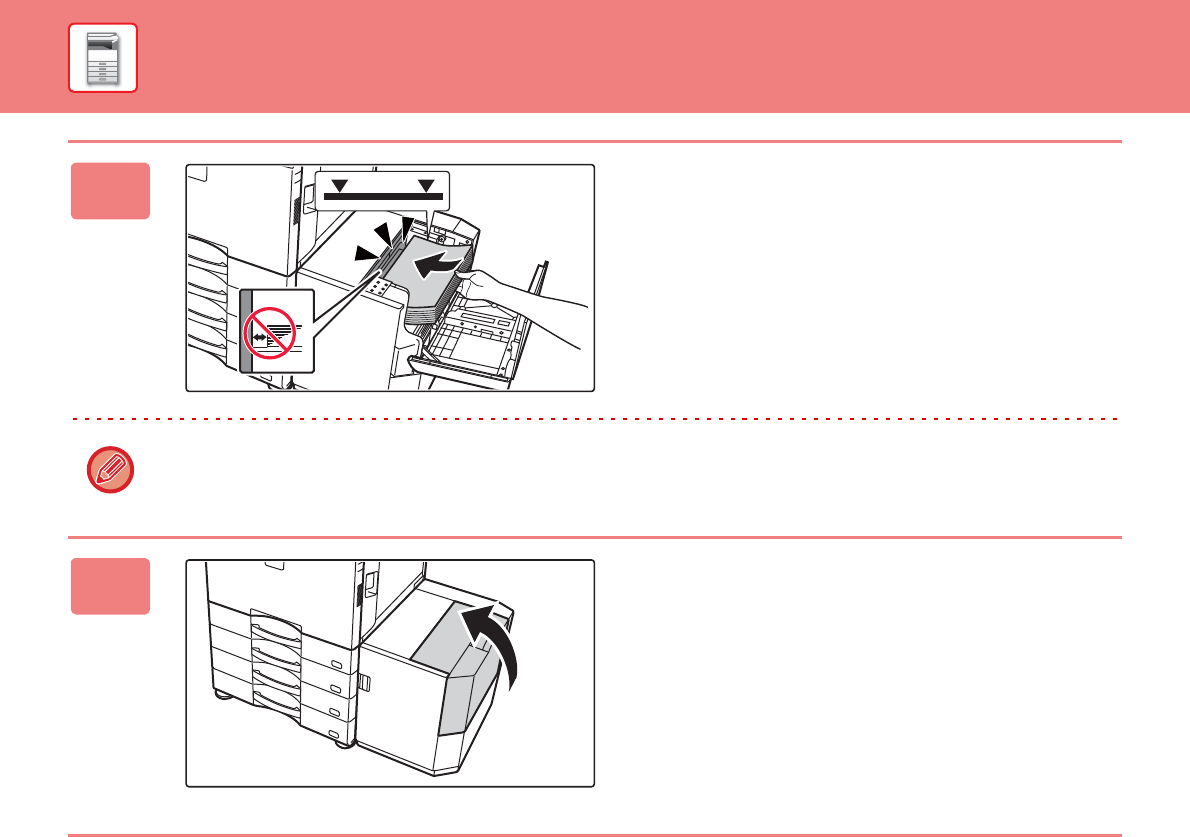 When adding paper, take care that previously loaded paper does not shift out of place. This may cause misfeeds and