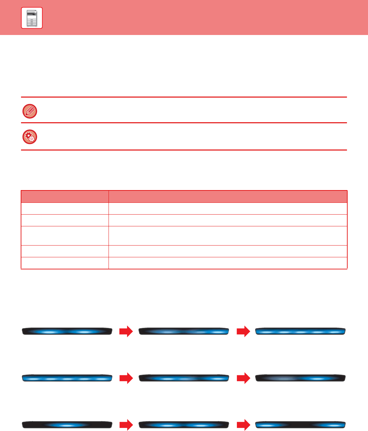 Lighting pattern 4 At job start (copy, scan, fax) on the operation panel