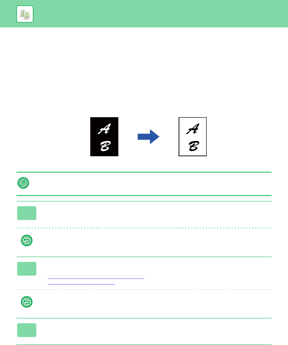 Originals with large black areas (which use a large amount of toner) can be copied using Black/White Reverse to reduce