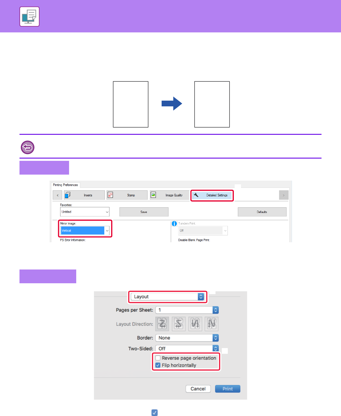 (2) Select the [Flip horizontally] checkbox ( ).
