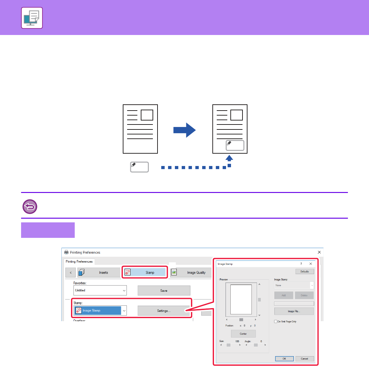 (2) Select [Image Stamp] from "Stamp" and click the [Settings] button.
