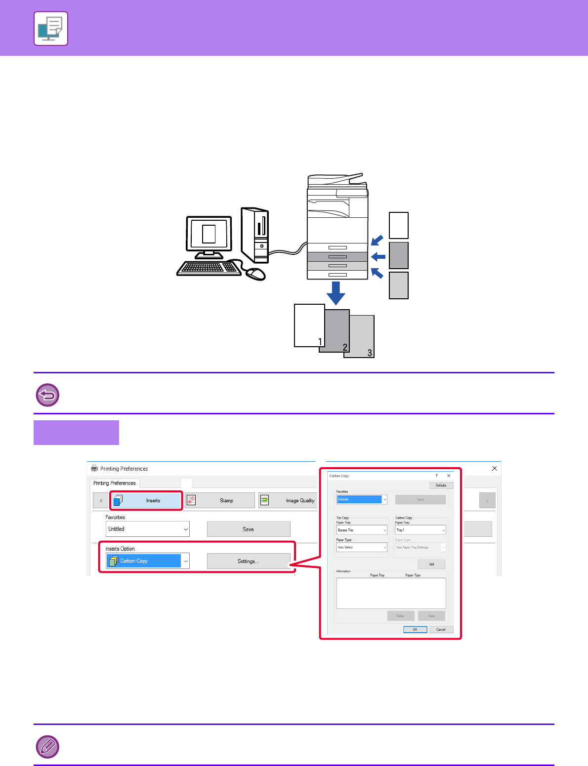 loaded into tray 1 and recycled paper is loaded into tray 2 as necessary, selecting Carbon Copy simultaneously prints