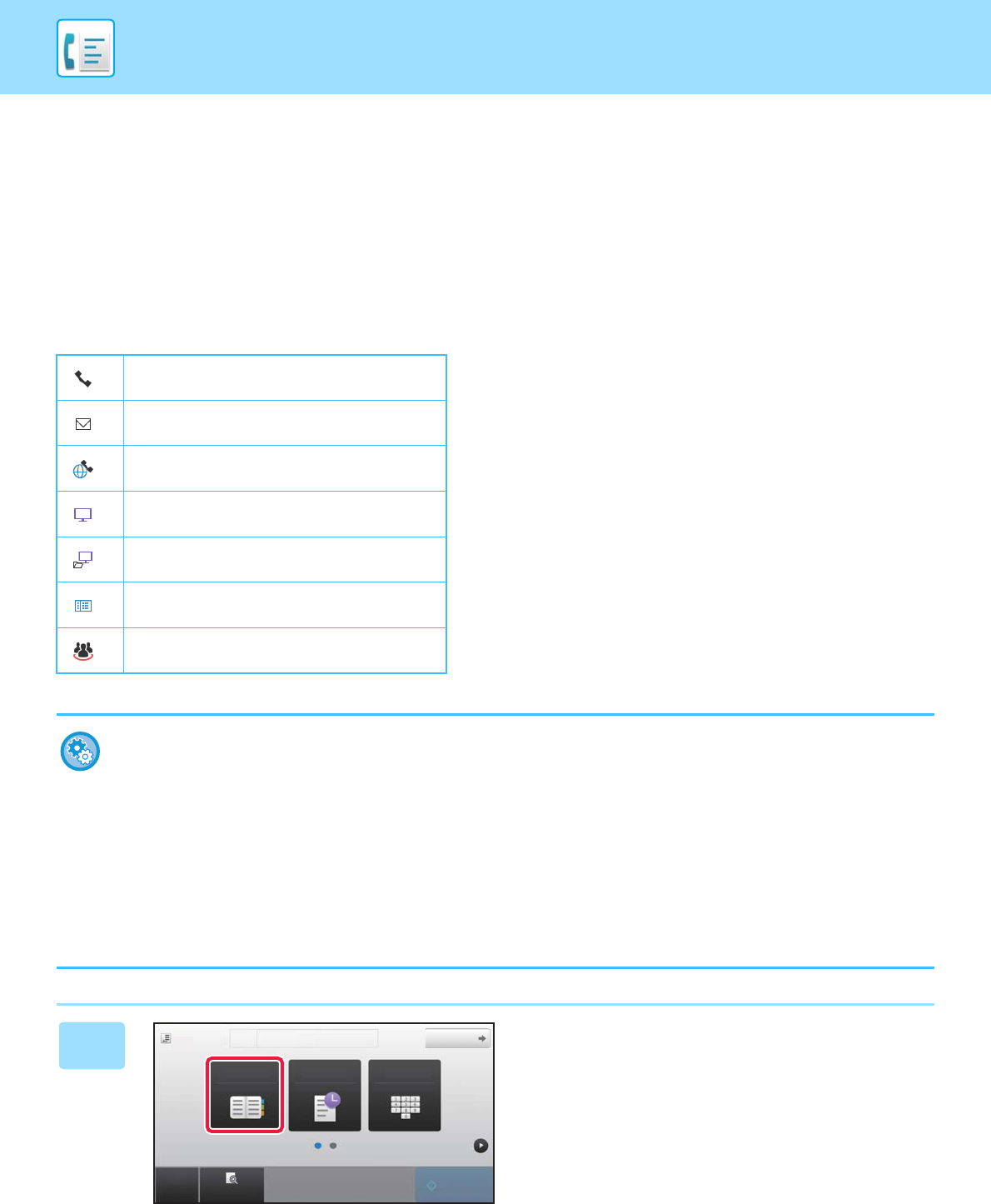 For the Address Book, refer to the "User's Manual (Address Book Registration)".