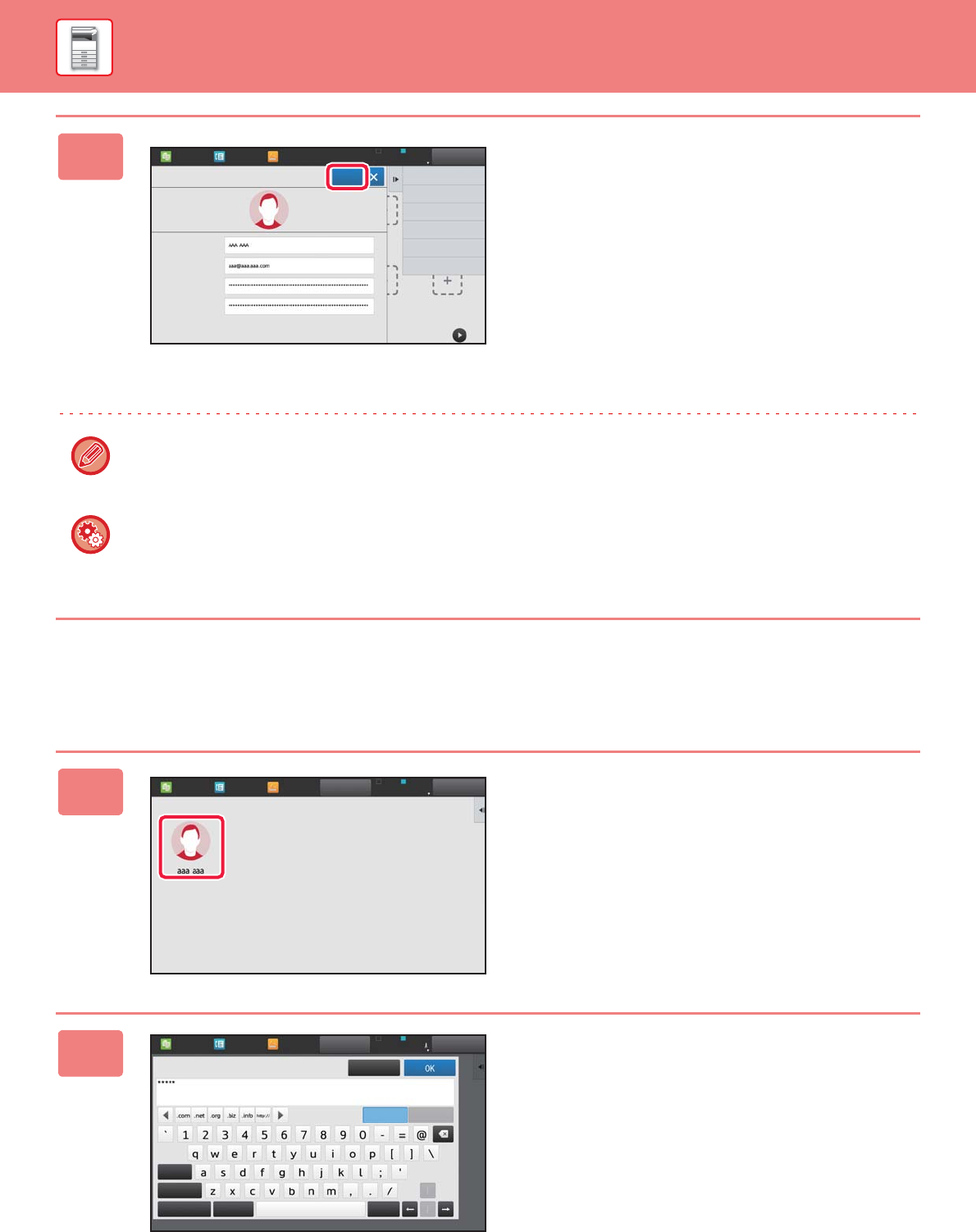 Tap [Add user/Edit user registration] on the action panel, then tap the icon of the user to delete. Tap [Delete] on the