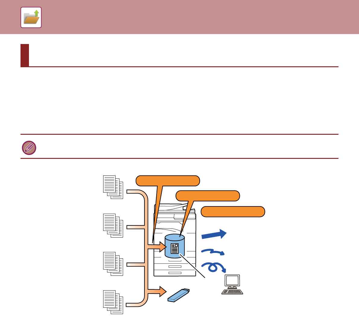 This function saves the original scanned on the machine, transmitted fax image, or print data from a computer on the