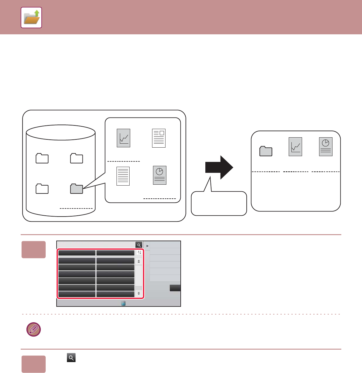 When there are many stored files, it may take some time to locate a file. The search function of document filing mode