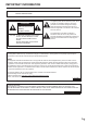 IMPORTANT INFORMATION WARNING: TO REDUCE THE RISK OF FIRE OR ELECTRIC SHOCK, DO NOT EXPOSE THIS PRODUCT TO RAIN OR MOISTURE. CAUTION RISK OF ELECTRIC SHOCK DO NOT OPEN CAUTION: TO REDUCE THE RISK OF ELECTRIC SHOCK, DO NOT REMOVE COVER. NO USER-SERVICEABLE PARTS INSIDE. REFER SERVICING TO QUALIFIED SERVICE PERSONNEL.
