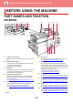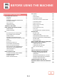 BEFORE USING THE MACHINE BEFORE USING THE MACHINE User Control . . . . . . . . . . . . . . . . . . . . . . . . . . . . . . 1-38 • User List . . . . . . . . . . . . . . . . . . . . . . . . . . . . . . 1-38 • Default Settings . . . . . . . . . . . . . . . . . . . . . . . . 1-42 • Administration Settings. . . . . . . . . . . . . . . . . . . 1-46 • Actions when the user is authenticated . . . . . . 1-47 PART NAMES AND FUNCTION . . . . . . . . . . . . . . . 1-3 • EXTERIOR . . . . . . . . . . . . . .
