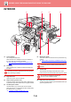 BEFORE USING THE MACHINE►BEFORE USING THE MACHINE (20) (21) (22) (23) (25) (20) Finisher (large stacker)* (24) (26) (27) (28) (29) (25) Trimming module* This staples paper. A punch module can also be installed to punch holes in output paper. ► FINISHER (LARGE STACKER) (page 1-139) This trims the excess of saddle-stitched output. (26) Folding unit* This folds and outputs paper. (21) Saddle stitch finisher (large stacker)* (27) Curl correction unit* This staples and folds paper.