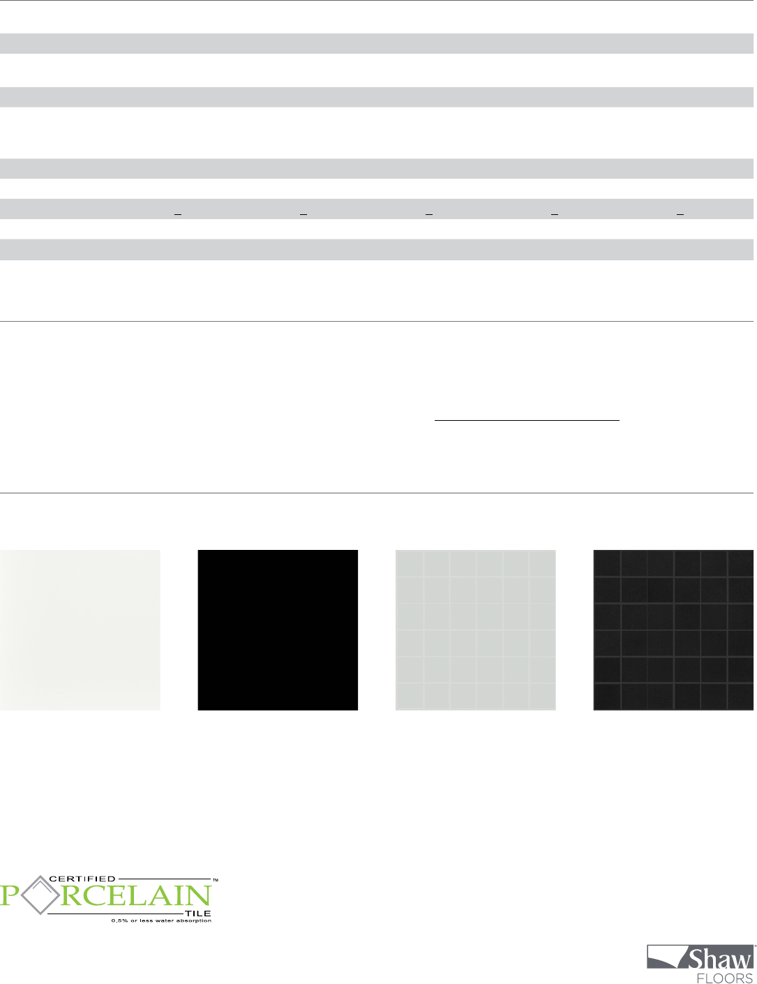 Tile Size 24" × 24 12" × 24" 12" × 12" 3" × 24" 12" × 12" × 2"