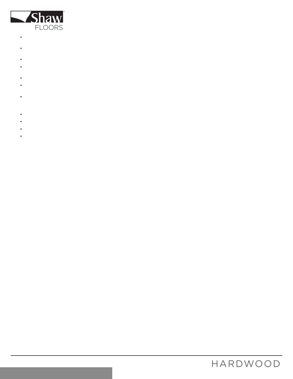 Periodic cleaning will be necessary to help maintain the oor’s appearance. Always pre-vacuum or dust mop before any type of cleaning. Shaw Hard