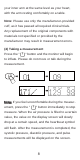 3) Tighten the cuff around your arm, so it can not move around your arm. Note: Repeated measurement may result in blood congestion in the arm, which will affect the measurement result. To avoid this situation, we advise that you can raise the left hand and hold the fist for several times, or take off the cuff and rest for at least 2-3 minutes before taking the measurement. (3) Measurement Tips • To take a measurement, you need to be relaxed and comfortably seated in a room with a comfortable temperature.