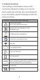11. Precautions, Warnings and Prompt Instructions • No maintenance or servicing when using. • Do not operate when charging. • Dispose of the monitor when its service life is reached. Follow local regulations regarding the disposal of such products. • Maintenance should be done by the operator as suggested.