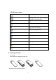 Inserting and removing the SIM card Inserting and removing the TF card Charging the battery Connect the battery charger to your phone and mains socket respectively. •The charging may take about 20 minutes to start if the battery is flat. •Be careful not to force the plug into the socket. •Make sure the battery is correctly inserted before connecting the charger. •The mains socket must be near to the phone and easily accessible (avoid electric extension cables).