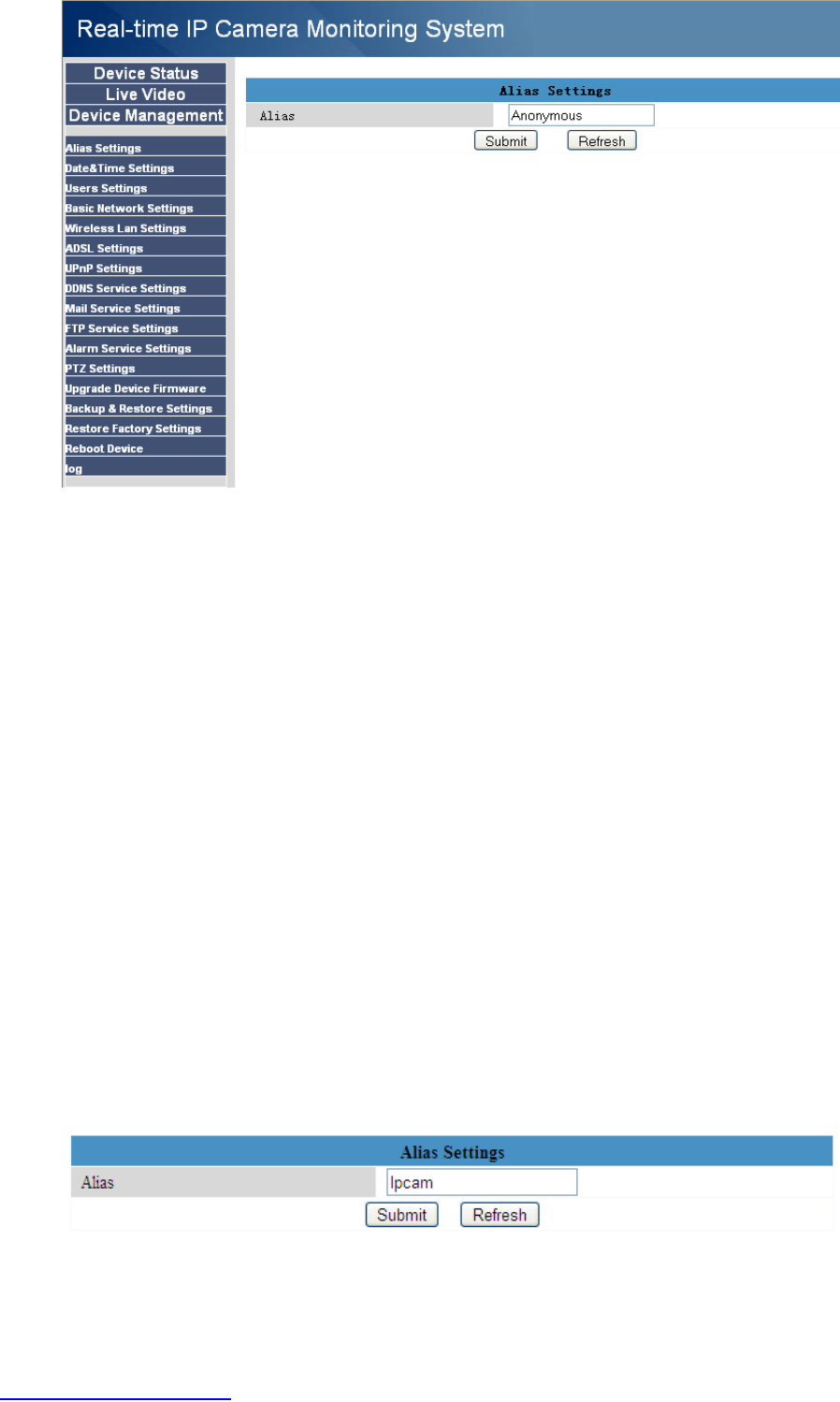 Default alias is anonymous. You can set a name for your camera here. Such as Ipcam, then click