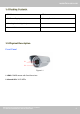www.foscam.com 5.2 Default Parameters Default network Parameters IP address: obtain dynamically Subnet mask: obtain dynamically Gateway: obtain dynamically DDNS: Embedded FOSCAM DDNS Service Username and password Default administrator username: admin Default administrator password: No password 5.3 Specification Specification Image Sensor Lens Audio Video Network FI9805E Image Sensor High Definition Color CMOS Sensor Lens f : 4mm or 6mm or 8mm Mini. Illumination 0.