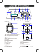 TOP PANEL 2 3 4 5 6 POWER MODE 1 0 10 MIC VOLUME 0 10 10 0 GT VOLUME MIC ECHO LIGHT VOLUME 7 8 9 10 11 FRONT VIEW 12 13 14 SIDE PANEL 15 MIC GT 19 18 16 USB 1A OUT 21 20 DC IN 17 23 22 1. MIC VOLUME (Microphone Volume) Control Knob 2. MIC ECHO (Microphone Echo) Control Knob 3. GT VOLUME (Guitar Volume) Control Knob 4. (Play/Pause) Button 5. POWER Indicator 6. MODE/ (Mode selection/Power) Button 7. LED Display 8. Indicators of Battery Meter 9. BATTERY METER Button 10.
