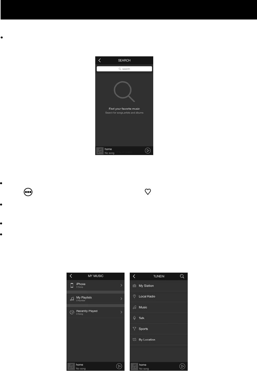 On Home Page, tap Search to search the desired music shown on the below pictures.