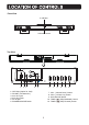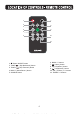 1 2 TUNE- TUNE+ MO/ST SOURCE BASS - TREBLE- VOL- BASS+ TREBLE+ VOL+ EQ 8 3 4 5 9 10 6 11 6. BASS +/- buttons 7. ( Mute ) button 8. EQ ( Equalizer ) button 9. ( Play/Pause ) button 10. VOL ( Volume ) +/- buttons 11. TREBLE +/- buttons 1. Power ON/OFF button 2. TUNE-/ ( Skip Backward ) button 3. TUNE+/ ( Skip Forward ) button 4. MO/ST ( Mono/Stereo ) button 5.