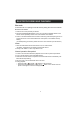 1. Insert the plug from the supplied AC/DC adaptor to the DC In Jack on the top of unit. 2. Insert the small plug from the supplied AC Power Cord to the AC In Jack on the AC/DC Adaptor. To the wall outlet To the AC In Jack 3. Insert the AC Plug from the supplied to the wall outlet Having AC 100-240V~; 50/60Hz. To the DC IN jack on the top of the unit. NOTE: If Long period of time will not use the unit, unplug the AC Cord from the wall outlet. 1.