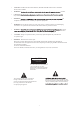 SAFETY INSTRUCTIONS 1. Read these instructions. 2. Keep these instructions. 3. Heed all warnings. 4. Follow all instructions. 5. Do not use this apparatus near water. This apparatus shall not be exposed to dripping or splashing, and no objects filled with liquids, such as vases, shall be placed on the apparatus. 6. Clean only with a dry cloth. 7. Do not block any ventilation openings. Install in accordance with the manufacturer’s instructions.