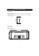 GENERAL VIEW Front View 2 1 3 11 4 9 8 10 7 5 6 6. USB Jack 7. AUX IN Jack 8. Play/Pause/ Preset/ Memory/Preset Play Button 9. PAIR Button 10. SOURCE Button 11. POWER Button 1. LED Display 2. Remote Sensor 3. Previous/Tune Down Next /Tune Up 4. Volume Down Volume Up 5. ZONE A/B/C Button Rear View 1 2 3 4 5 6 8 7 1.TV Audio In Jacks 2.DVD Audio In Jacks 3.Antenna Jack 4.EXT IR (External Remote Sensor) Jack 5.VIDEO Out Jack x 4 9 6.VIDEO In Jack 7.External Subwoofer Connector 8.