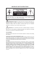 IMPORTANT SAFETY INSTRUCTIONS CAUTION: TO REDUCE THE ELECTRIC SHOCK, DO NOT REMOVE THE COVER (OR BACK). NO USER SERVICEABLE PARTS INSIDE. REFER SERVICING TO QUALIFIED SERVICE PERSONNEL. DANGEROUS VOLTAGE: The lighting flash with arrowhead symbol within an equilateral triangle is intended to alert the user to the presence of uninsulated “dangerous voltage” within the product’s enclosure that may be of sufficient magnitude to constitute a risk of electric shock to persons.