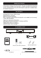 GENERAL VIEW Front View 1 2 3 A PAIR B 4 15 14 13 12 5 AUX IN USB 7 8 6 1. PAIR Button 6. 2. ZONE A Button 7. AUX IN Jack 3. POWER Button 8. USB Jack 4. POWER Indicator 5. ZONE B Button 9. NEXT/TUNE Up 10. Volume Down 9 10 11 (SOURCE)Button 11. PREVIOUS/TUNE Down 12. Volume Up 13. Play/Pause/ Preset/ Memory/Preset Play Button 14. LED Display 15. Remote Sensor Rear View 1 2 ZONE B SPEAKERS L 3 EXT SUB OPTICAL IN L DC 12V IN R R DVD AUDIO IN TV AUDIO IN ANTENNA R L IN.
