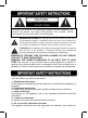CAUTION RISK OF ELECTRIC SHOCK DO NOT OPEN CAUTION: TO REDUCE THE ELECTRIC SHOCK, DO NOT REMOVE THE COVER (OR BACK). NO USER SERVICEABLE PART INSIDE, REFER SERVICING TO QUALIFIED SERVICE PERSONNEL. DANGEROUS VOLTAGE:The lighting flash with arrowhead symbol within an equilateral triangle is intended to alert the user to the presence of uninsulated “dangerous voltage” within the product’s enclosure that may be of sufficient magnitude to constitute a risk of electric shock to persons.