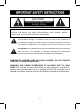 20. Service Do not attempt to service this product yourself as opening or removing covers may expose you to dangerous voltage or other hazards. Refer all servicing to qualified service personnel. 21. Replacement parts When replacement parts are required, be sure the service technician uses replacement parts specified by the manufacturer or those that have the same characteristics as the original parts. Unauthorized substitutions may result in fire or electric shock or other hazards. 22.