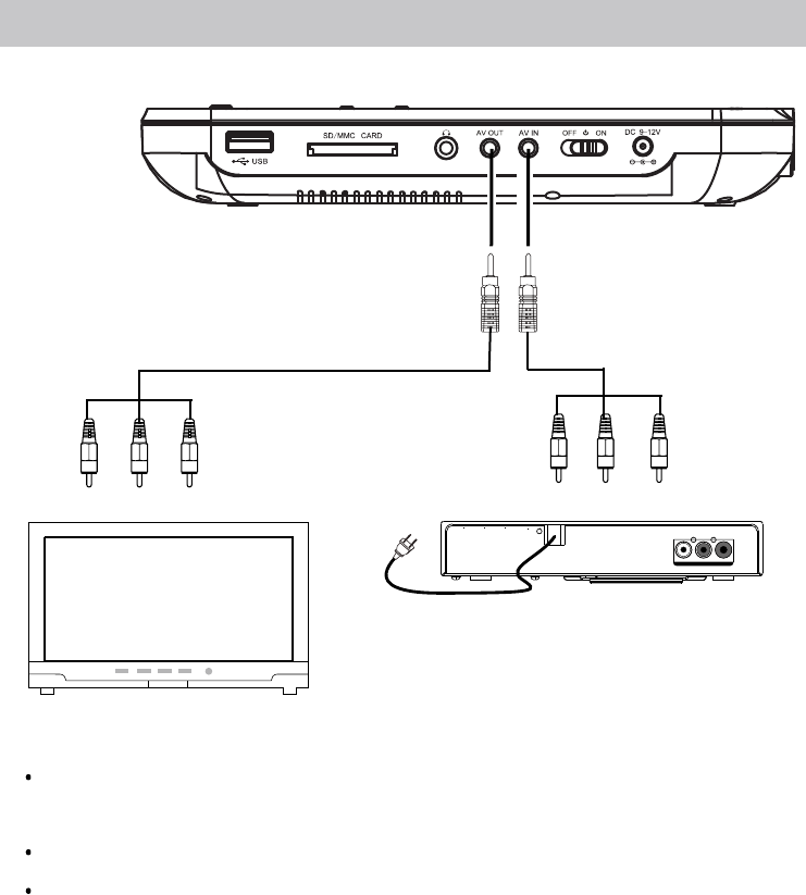 Connecting to a TV or Video Player such like DVD; VCR; DVR Players ... (AV connection cable not included)