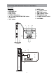 PACKAGE CONTENTS When you unpack your new unit, make sure that you have removed all the accessories and information papers: -Speaker tower -User manual -Remote Control -1 piece of Stereo audio connection cable with 3.5 stereo plug -2 pieces of Assembly screws / washers INSTALLATION 1. Remote Sensor 2. Tweeters 3. Loud Speakers 4. Base 5. Screws 6.