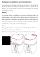 Put the desiccant pack into the drying box on the top cover. Unlock the lock on the cover to install the cover. Then place the feeding tray into the feeder from the bottom. Rotate the lens down to monitor feeding tray. ① ② Operation panel introduction: Config Button Indicator Lens Notice: For your pet's health, please wash the grain bucket and feeding tray regularly. The feeder body should not be filled with water. Please use a wring-able wet cloth to wipe.