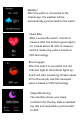 Weather After the watch is connected to the mobile app, the weather will be automatically synchronized to the watch. Heart Rate After a successful switch, it starts to measure after the bottom green light is on; it takes about 30~60s to measure and the measuring value is based on PPG technology. Blood oxygen After the switch is successful, the red indicator light at the bottom lights up, and it will start measuring. It takes about 30 to 60 seconds, and the measured value is based on PPG technology.