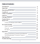 Table of Contents Introduction 4 Important 4 Operating Restrictions 4 Conditions 6 Safety Instructions 7 Features 8 Package Contents 9 Product Basics 10 Quick Start 11 Camera Installation (SM-209DT) On-Screen Display 11 14 Signal Strength 14 Channel 14 No Signal 14 Operation 15 Adding and Pairing Camera to the Receiver 15 Switching between Channels/Cameras 15 Specifications 16 Troubleshooting 17 3