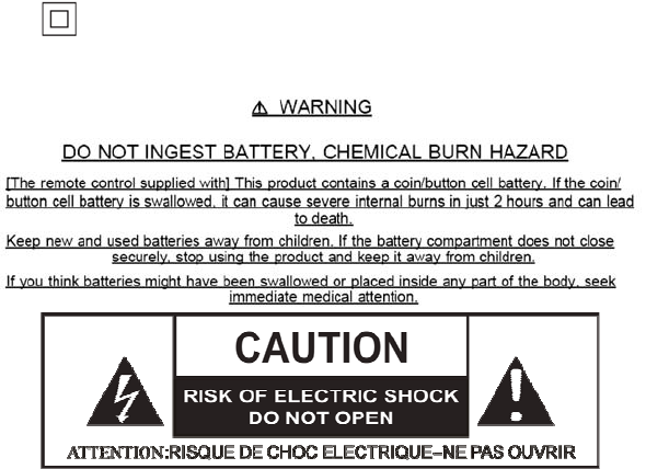- Warning: To reduce the risk of electric shock, do not remove cover (or